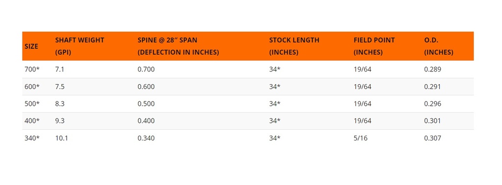 | Spinewert | 500 oder 600 oder 700 oder 400 oder 340 |